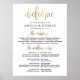 Det här är ett vackert bröllopsprogram som poster välkomstskylt med manustext i guld.