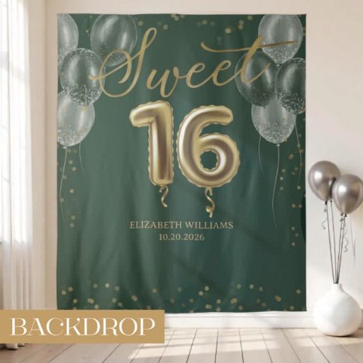 Emerald Green Gold Foil Sweet 16 Bday BalloonsDesignad av CaMi Designs
