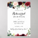 Välkomstskylten för kalligrafi i höst är perfekt för en rustisk bröllop-repetition. Utformningen har burgundära, röda, marinerade, blå och strålande och roliga handmålade blommor, inspirerande naturskönhet.
