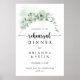 Denna klassiska eucalyptus rehearsal Middag- välkomstskylt är perfekt för en rustisk bröllop-repetition. Utformningen har vackra grönt av eucalyptus löv med vattenfärg.