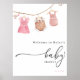 Välkomna gäster till din dusch med denna vackra skylt, med en vacker illustration av de klassiska kläderna i vintage baby hängda på en garderob. Lägg till hedersgästens namn, duschdatum och anpassningsbarnas välkomsttext med hjälp av fält.
