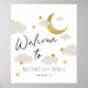 Den har ett modernt penselskript med vår illustration av ritade moln, accentuerad med faux guld-foillstjärnor och måne.