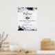 Välkomstskylt för marinblå Blommigt Bröllop Poster