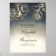 Vintage blommigt marinblått och guld bröllop välkomstskylt poster