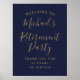 Välkomstskylt för marinblått och Guld Pension Part Poster
