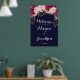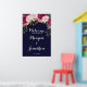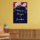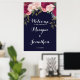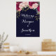 Ett vackert sätt att välkomna gästerna vid bröllop/party. Med en marin bakgrund och blommigtar för burgundi och rosa. Det är lätt att redigera texten som fält visar för att anpassa ditt tecken till kostym! Vissa bilder som används från TwigsAndTwineArt.com. Många matchande artiklar i den här eleganten finns i butiken nu för att se fullt.