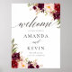 Välkomstskylt för Marsala burgundy Blommigt Bröllo Poster