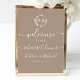 En enkel chic lövrik falsk folie-monogram grullo repetitionens middag välkomstskylt på skumskiva. Lätt att anpassa med dina detaljer. Modern boho repetition middag välkomstskylt på skumskiva redigerbar, kransar foto bröllopsinbjudan, anpassningsbar, kalligrafi handskriven stil, enkel, elegant.