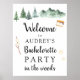 Välkommen gäster till er möhippa med denna roliga välkomstskylt med akvarellträd, berg och marshmallow-verktyg. Lägg till hedersgästens namn och anpassa välkomsttexten med hjälp av de fält som tillhandahålls.
