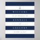 Designat för att matcha vår insamling av Nautical Mix bröllop, är elegantens skylt över stil vid kusten perfekt för att välkomna gäster till ceremonin eller mottagningen i bröllop. Anpassa texten till fält med ditt välkomstmeddelande, namn och bröllop, mot bakgrund av marinblått rand med ankare överst.