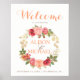 Välkomstskylt för peachy rosa guld ro och bröllop poster