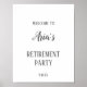 Denna minimalistiska välkomstskylt från pension party är perfekt för en elegant pension firande eller mottagning. Utformningen har grått-kalligrafi i mörk med kontrasterande enkel typografi. Du kan anpassa det här mångsidiga välkomsttecknet genom att ändra bakgrunden och formuleringen till valfritt färg, eller genom att lägga till egna teckningar eller bilder. Anpassa tecknet med hedersgästen och händelsedatumet.