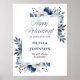 Denna eleganta marinblå och vita välkomstskylt för pensioneringsfest med blommor kan anpassas med din information i modern typsnitt. Designad av Thisisnotme©
