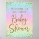 Välkomstskylt för regnbågsbabyfest med fina gyllene bokstäver på en regnbågs- och guldglittrig bakgrund. Denna välkomstskylt för regnbågsbabyfest kan enkelt anpassas för ditt evenemang genom att bara lägga till dina uppgifter. Du kan också ta bort bakgrunden och lägga till den färg du väljer.