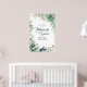 Välkomstskylt för repetitionens middag med grönska poster