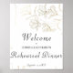 Välkomstskylt för repetitionens middag med guldblo poster