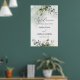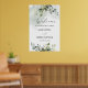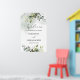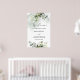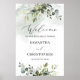 Välkomstskylt för repetitionsmiddag med grönska oc poster