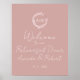 Lätt att anpassa med dina detaljer. En enkel chic blomsterliknande falsk folie monogram rosa välkomstskylt för repetitionsmiddag. Modern boho välkomstskylt för repetitionsmiddag redigerbar, anpassningsbar, kalligrafisk handskriven stil, enkel, elegant.