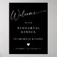 Välkomstskylt för repetitionsmiddagen kvällen före poster