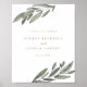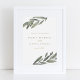 Elegant vattenfärg botaniskt bröllop-välkomsttecken med vackra handdragna olivträd grenar som ger dig närmare uppgifter om bröllop. Anpassa med din ceremoniinformation i naturtypsbilden färgad.