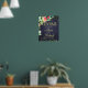 Chic och klassskylt bröllop poster med ett rosa och korallat röd ros med tealblått löv och guldfärgat löv med utandning på mörken vid midnattsflottans blå bakgrund. Perfekt för din elegant vår, sommar | Klassträdgård | Hösthösten | land bröllop.