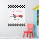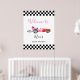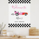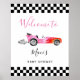 Välkomstskylt för rosa Tävling-bilens babyskor Poster