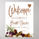 Välkomstskylt för rostad möhippa för fallande blom poster