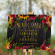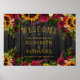 Personlig land lantgård bröllop: Välkomstskylt poster med vackra solblommor i gult och burgundy ro bouquets ramar med naturlig guld över en grönt brunladsbakgrund. ++++++++++++++ Enkel att anpassa med namn, datum och ställe. ++++++++++++ Lämpligt för sommartid eller höst vid ceremonier och mottagningar utanför trädgård eller på bakgård vid bröllop.