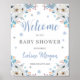Välkomstskylt för silver babydusch i vinterblå blo poster