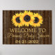 Välkomstskylt för solblommor, babyskor, Rustic Woo Poster