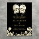 Välkomsttecknet för den svarta och guld gotiska blommigten döskallar bröllop kan vara personlig med dina uppgifter i modern typografi. Designad av Thisisnotme©
