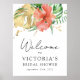 Välkomstskylt för tropisk blomsterbröllopsfest poster