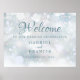 En chic välkomstskylt för vinterbröllop med ömtåliga snöflingor som faller över ditt personliga välkomstmeddelande, namn och speciella datum på en vinterfrostdisk bakgrund. Designad av Thisisnotme©