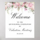 Välkomstskylt för vit Rosa Blommigt Quinceanera Poster