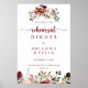 Den här vackra sommarmiddagsvälkomsttecknet är perfekt för en enkel blommigt i bröllop. Utformningen har blommor, rosa och vattenfärgsblommor med grönt löv i en brinnande nedfläckad.