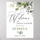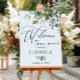 Välkomstskylt i akvarell för bröllopsfest med euka poster