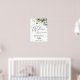 Välkomna gäster till er bröllopsfest med denna välkomstaffisch med vita rosor och grönska, med frodig botanisk grönska i akvarell och vita blommor, med "välkommen till vår eviga lycka", era namn och bröllopsdatum i en chic blandning av moderna block- och handskrivna kalligrafistilar.