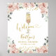 Välkomstskylt för bröllopsbrunch i guld och rosa dammig ros