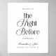 Välkommen gäster i tidlös stil med The Night Before Modern Elegant Black and White Rehearsal Dinner välkomstskylt. Designad med en raffinerad monokrom palett och sofistikerad typografi, sätter denna välkomstskylt tonen för en förhöjd och minnesvärd förfest inför bröllopet.