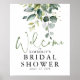 Elegant välkomstskylt för bröllopsfest eller baby shower med grönska