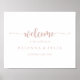 Välkomsttecknet bröllop vid kalligrafin i ro är perfekt för ett bröllop som ligger i norr. Den enkla utformningen och utformningen av eleganten har manusattypografin klassisk och finare i ro guld och vit. Gör detta till ett eget poster genom att lägga till namn i bruden och brudgummen och datumet för bröllop.