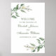 Välkomstskylt över vattenfärgsgrön blommigt bröllo poster