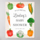Ett sött välkomsttecken för babyduschen poster. Konstruktionen har handmålade vattenfärggrönsaker på en ljusartad gingham-bakgrund.