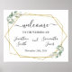 Välkomstskylt till bröllop grönska guld geometrisk poster