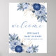 Välkomstskyltblått, vit Blommigt, babyskor Poster