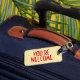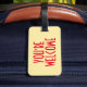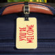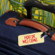 Välkomsttagg med läderband bagagebricka