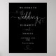 Den här eleganten välkomsttecken för svart och vitt hjärtskript bröllop kan vara personlig med din information i chic typografi. Designad av Thisisnotme©