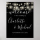 Med söt string ljus och namnteckning stil namn, kan elegantens svartvitt välkomsttecken vara personlig med dina uppgifter i chic. Designad av Thisisnotme©