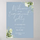 Välkomsttecken för blommigt Dusty Blue Förlovnings Poster