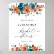 Välkomstskylt för bränd orange och möhippa för teal blommigt. Vackra handmålade vattenfärgblommor och grönt i perfekten för teal och bränd orange för sommar- och fallande möhippor. Matchande objekt är tillgängliga.